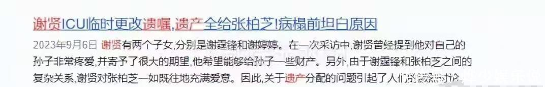 有人传出,谢贤的遗嘱里,亲生儿子和女儿只分到了剩下的那10%,这消息一出来,让不少人觉得有点难以置信,但也有人猜测,估计大部分财产会留给张柏芝。谢霆锋本身就很有钱,谢婷婷也已经结婚了,根本用不着谢贤操心这事,然而孩子从出生到现在一直都是张柏芝在照料。